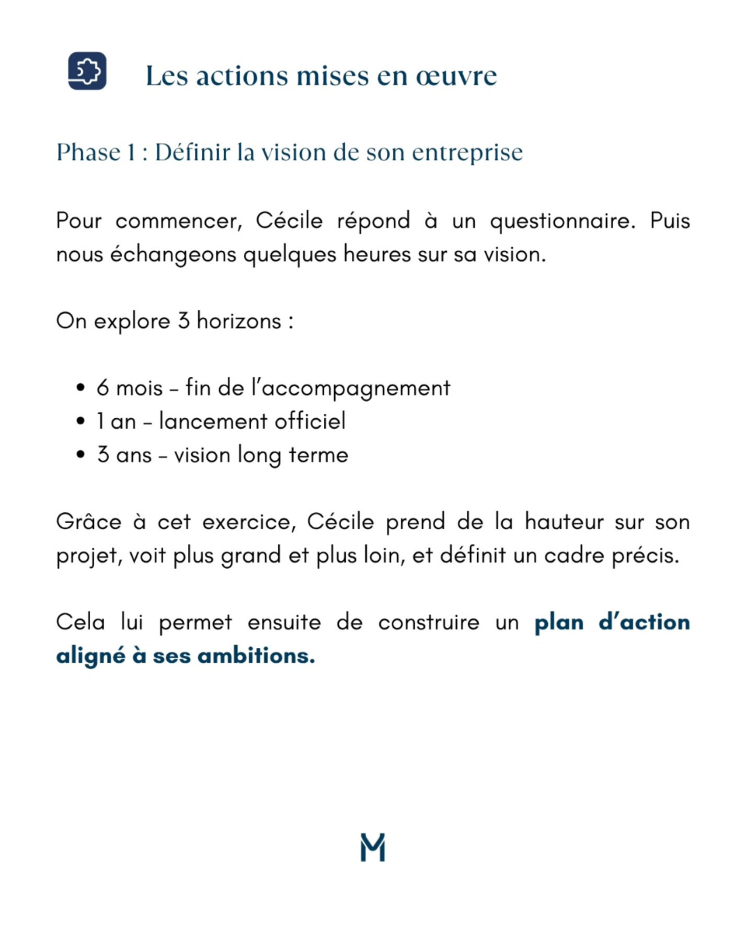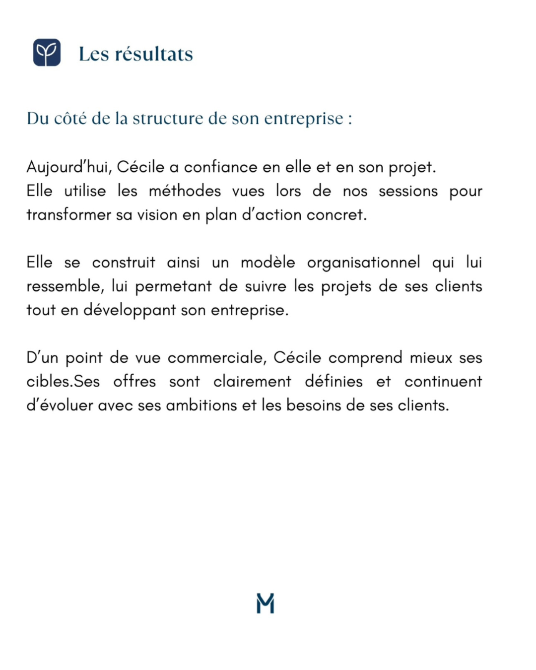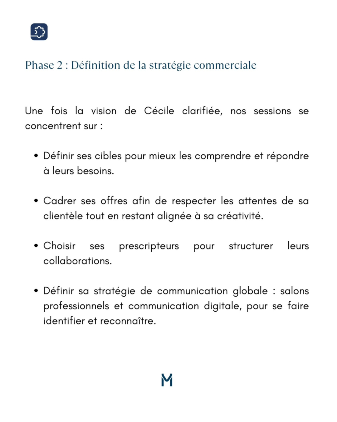 Vous recevez à la fin de l’accompagnement un dossier stratégique. Vous y retrouvez tous les sujets que nous aurons abordés pendant l’accompagnement et des conseils supplémentaires pour gagner en autonomie.